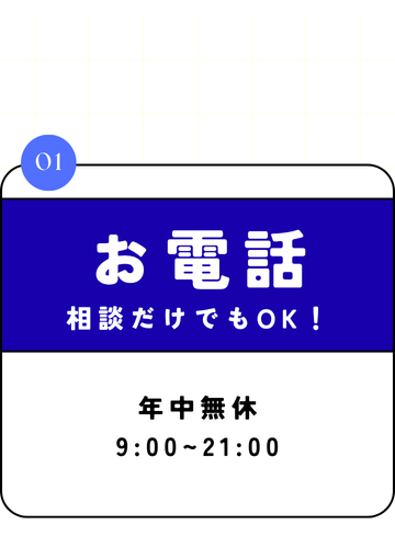 電話:080-1461-6526(受付:9:00〜21:00 年中無休)