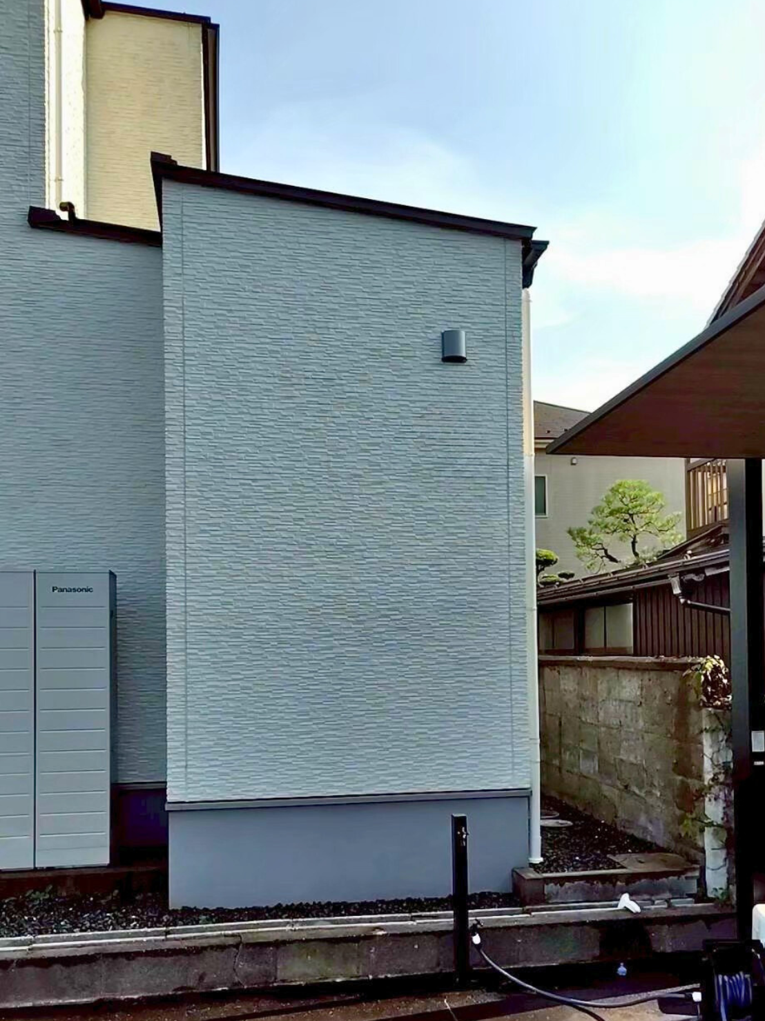 高圧洗浄機を使用して、外壁材を傷めずに黒ずみ・コケ・カビを徹底除去。わずか1日の作業で、まるで新築のような白さを取り戻すことができました。