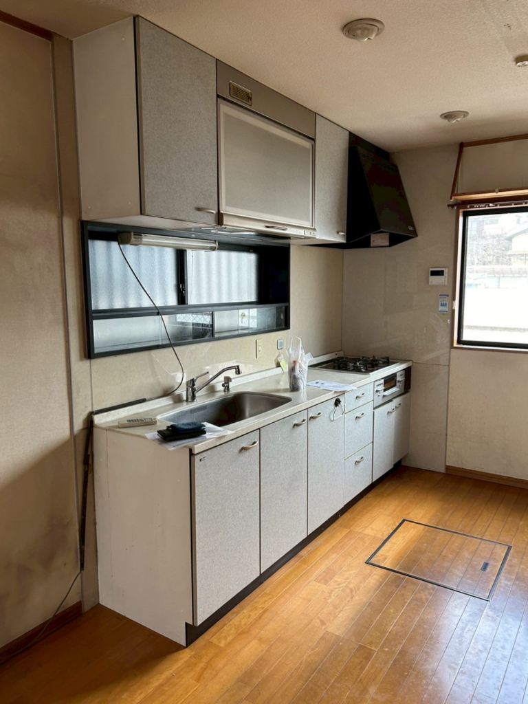 - ⚠️ 白色の古いシステムキッチン(I型)が変色・老朽化